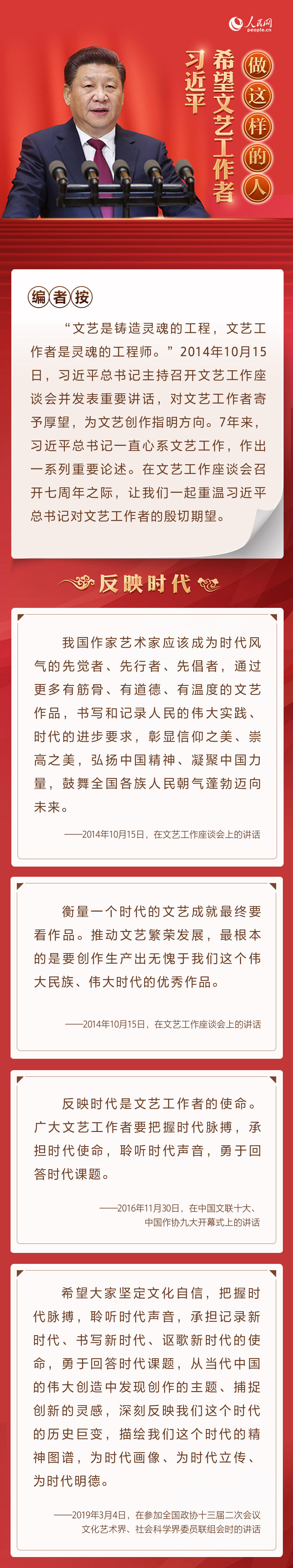 以文艺之光 铸时代之魂 | 习近平希望文艺工作者做这样的人 时间:2021-10-18 9:27:51 来源: 人民网 浏览:786 次浏览 字号:大 中 小 责任编辑:牛淋淋 微信“扫一扫”分享至朋友圈 分享: 打印本页 复制链接 上一篇: 习近平强调的“试金石” 下一篇: 如何开启人类高质量发展新征程,习近平指明方向 相关文章 学习语丨支持青年科技人才挑大梁、担重任 习近平致信祝贺国防科技大学建校70周年 学习语丨守牢美丽中国建设安全底线 《习近平著作选读》学习笔记:扣好人生的第一粒扣子 学习语丨走好践行“两个维护”第一方阵 习近平在中非领导人对话会上的主旨讲话(全文) 《习近平著作选读》学习笔记:跟着总书记一起重温这位伟人的话 学习语|金砖峰会上,习近平主席的金句集锦