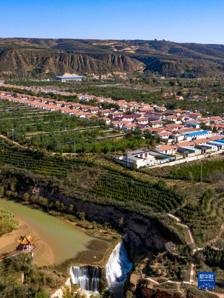流经宁夏固原市彭阳县城阳乡的茹河,因地壳变化和河床运动形成旱塬上的瀑布,当地以此发展乡村旅游(2019年10月12日摄,无人机照片)。新华社记者 冯开华 摄