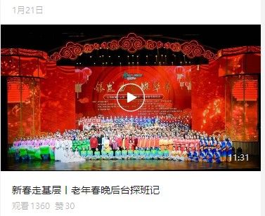 本报记者推出老年春晚后台探班记,用镜头记录了上千个老年表演团队和3万多名老年人参与海选的高涨热情,这背后是江苏民政打造强化老年人精神关爱文化品牌的生动实践,也体现了广大老年人对实现老有所乐、老有所为的迫切需求。
