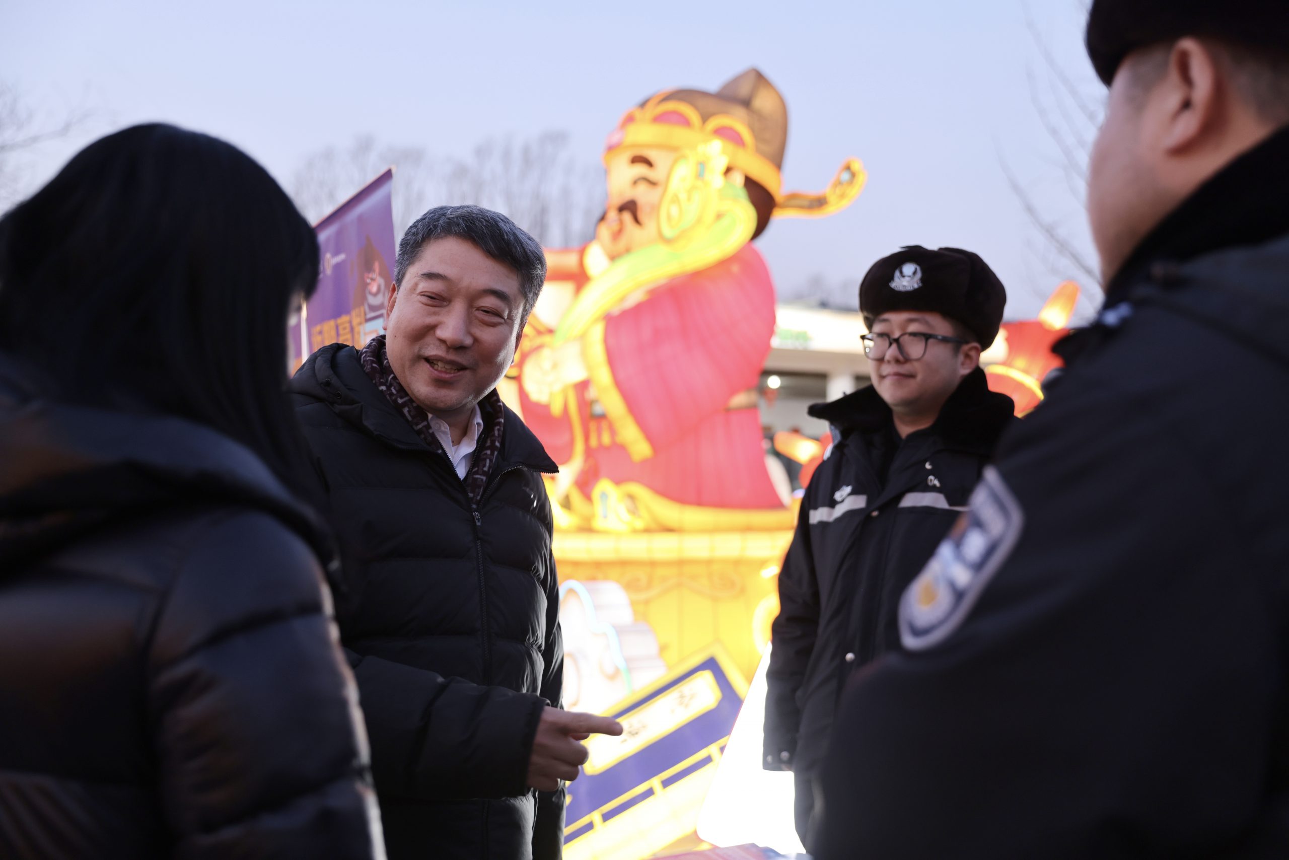 2025年2月10日,公安部新闻传媒中心主任、总编辑周学胜带队在北京园博园采访新春灯会安保工作。