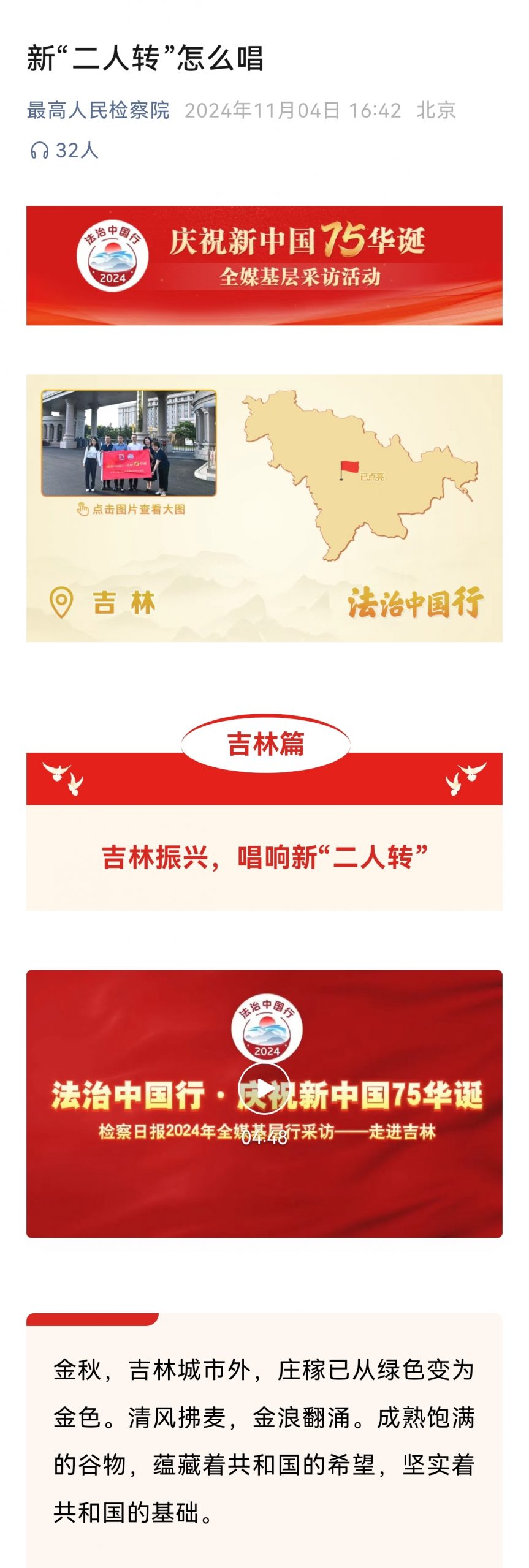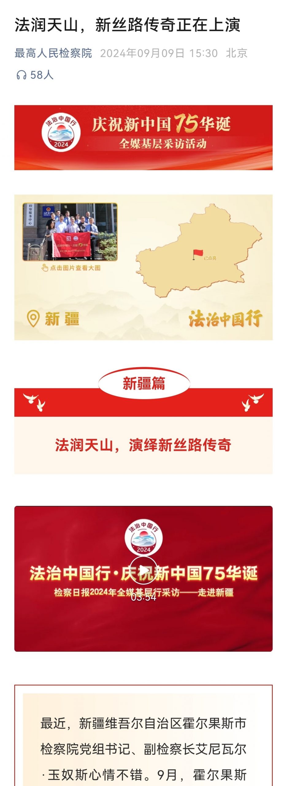 “法治中国行·庆祝新中国75华诞”2024年全媒基层行采访活动新媒体报道截图。