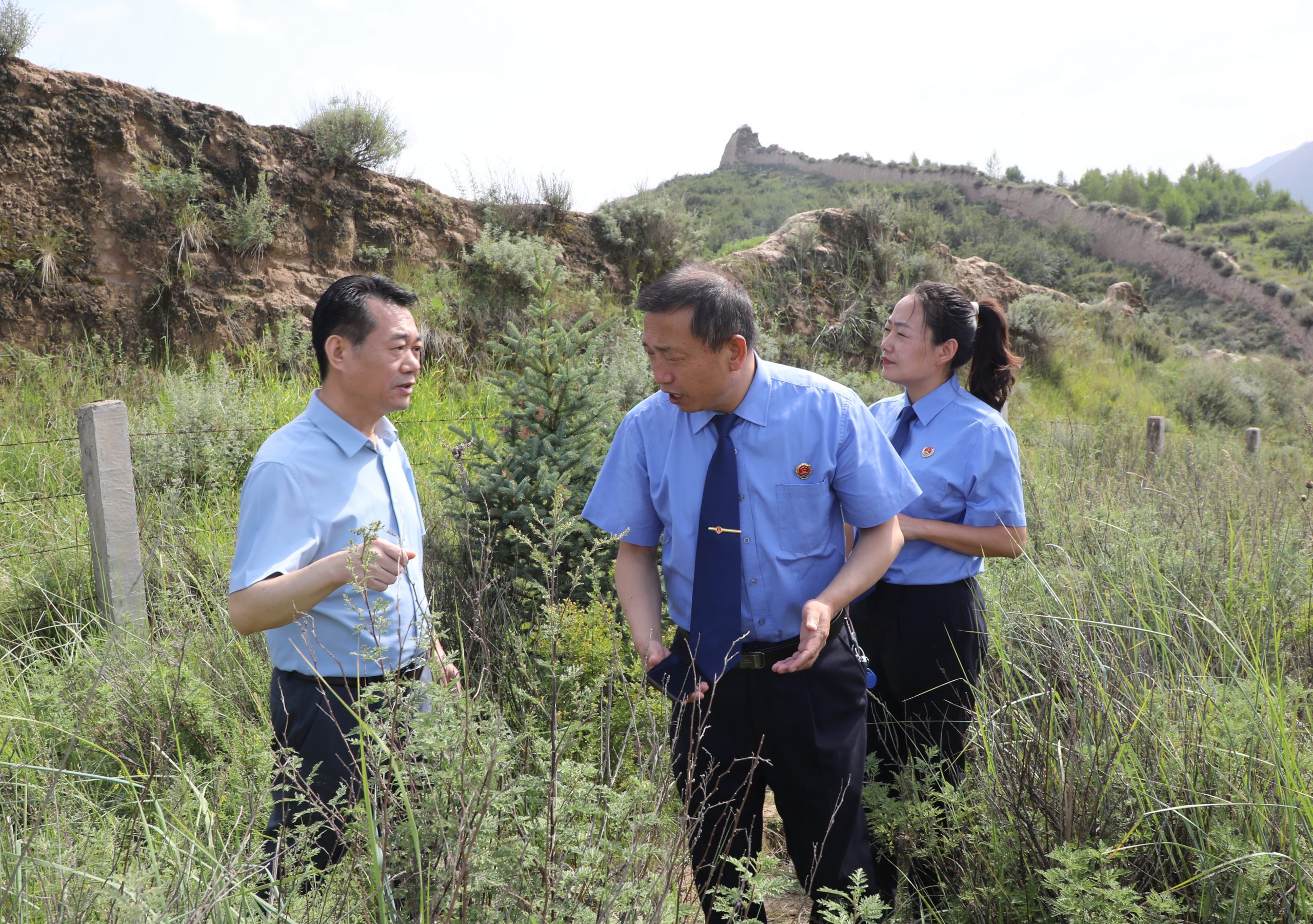 “法治中国行·庆祝新中国75华诞”2024年全媒基层行采访活动中,李辉社长带队前往青海采访。图为李辉社长在青海大通县“世界上海拔最高的明长城遗址”实地采访检察机关开展文物和文化遗产保护公益诉讼工作。
