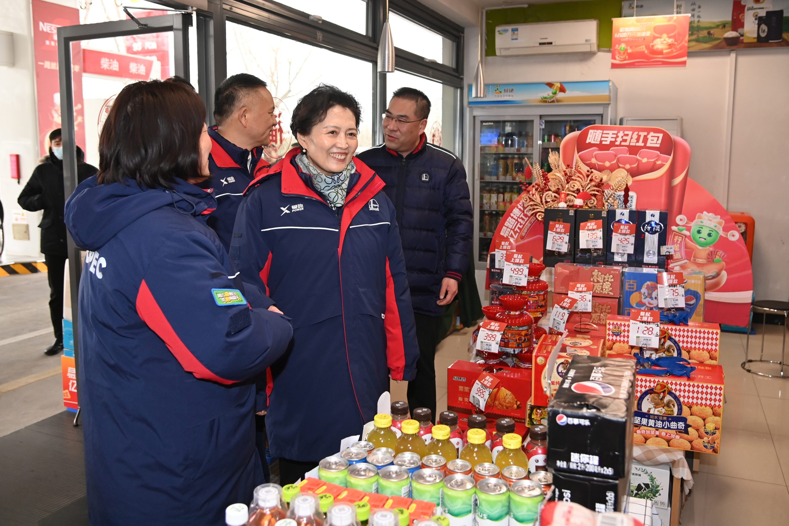 中国石化报社社长、总编辑杨守娟于2024年春节前夕在中国石化北京分公司小武基加能站采访