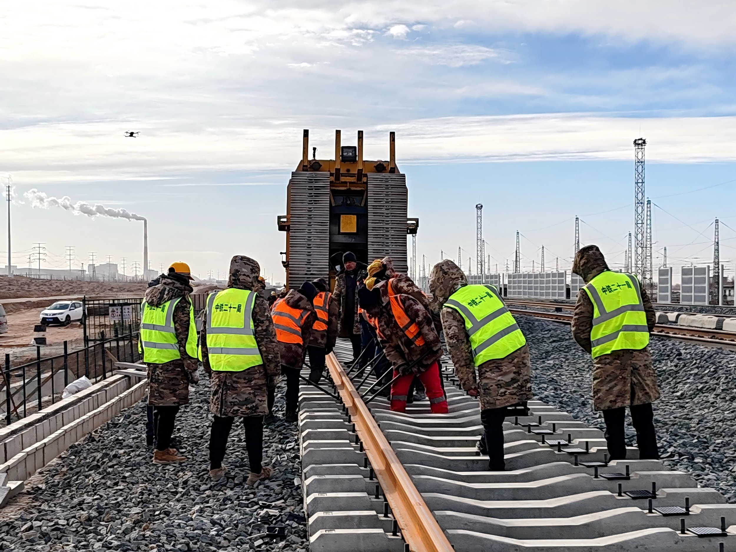 中铁二十一局内蒙古乌海项目春节施工“不打烊”,全力推进铁路铺轨作业。