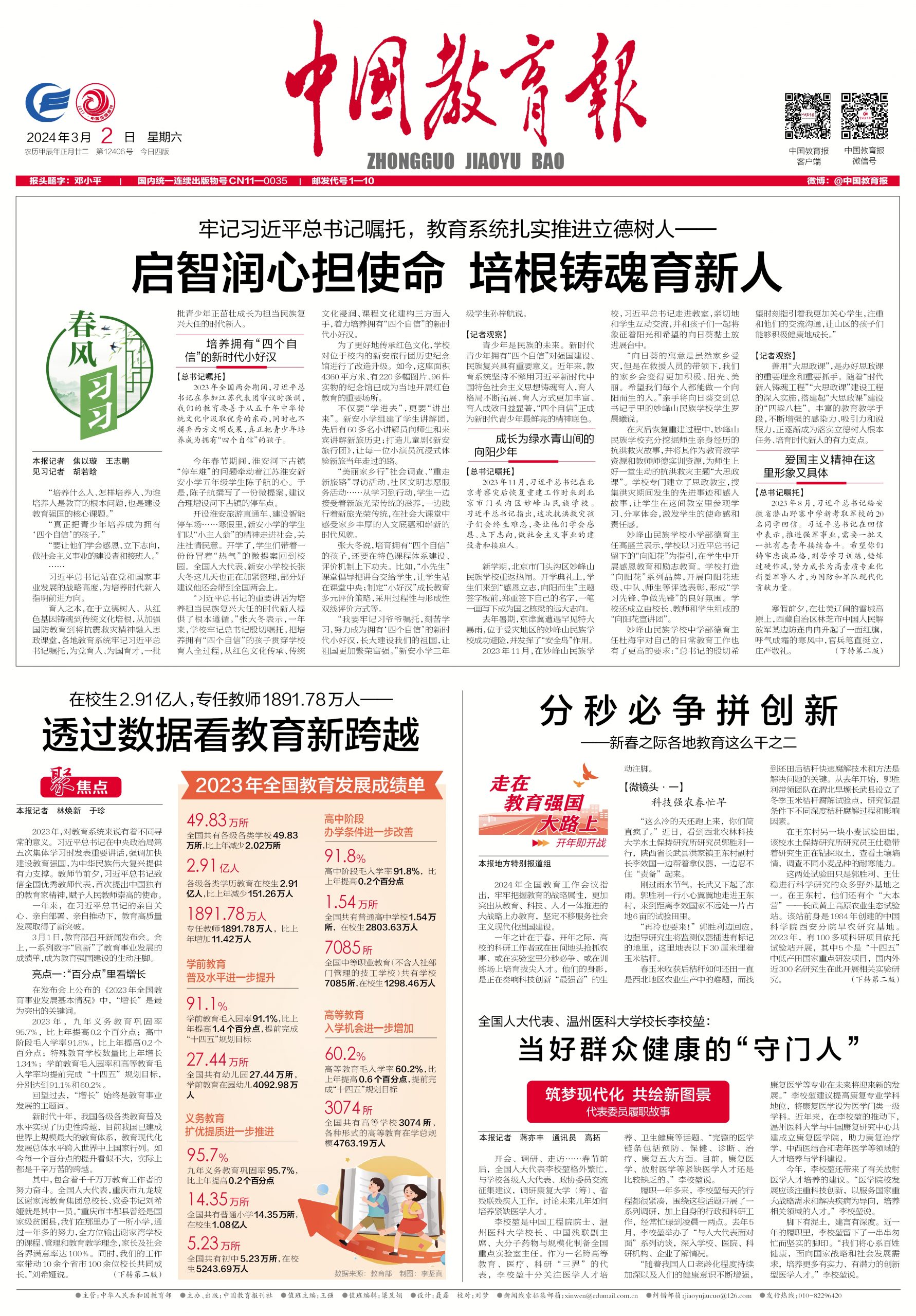 《中国教育报》在2025年1月14日一版头条刊发2025年“新春走基层”开栏首篇报道。