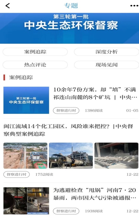 中国环境APP设置中央生态环保督察专题,刊发系列报道。