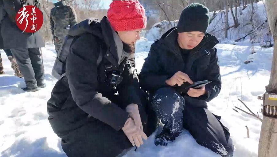秀美中国直播第一期“林海雪原寻虎迹”,记者在东北虎豹国家公园东宁片区采访,随巡护员在零下23度的雪地里查看红外相机。