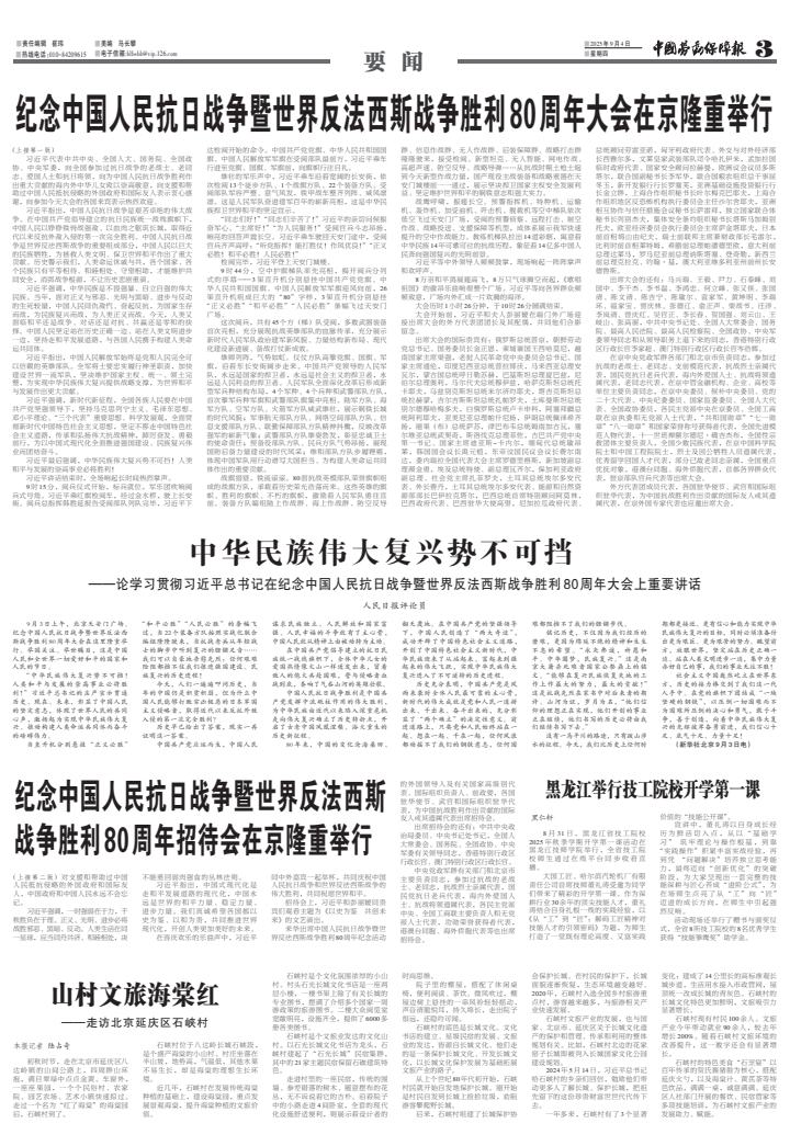 国富不仅体现在兵强上,还体现在我国科技水平的日益精进,以及人民群众生活水平不断提高的过程中。阅兵式前,中国人民抗日战争暨世界反法西斯战争胜利80周年纪念活动新闻中心组织中外记者外出参观采访,在天津港第二集装箱码头等地见证了我国现代工业发展的最新成果,在北京市延庆区八达岭镇石峡村体验了村民脱贫致富后的幸福生活。