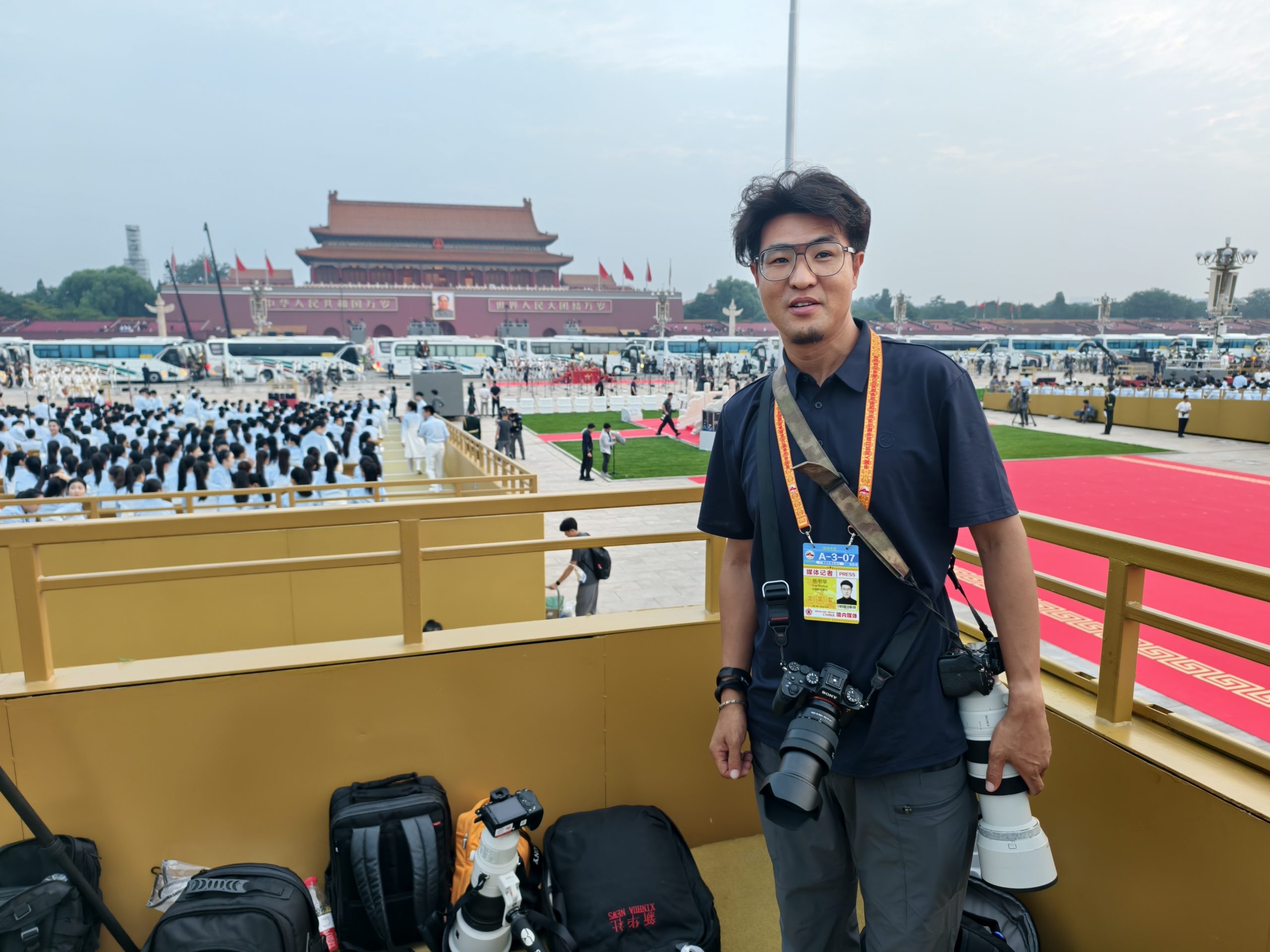 为了拍好这次阅兵活动,我提前做足了准备。镜头该选什么焦段、带几台机身合适,能不能带三脚架和闪光灯,要不要备梯子……我反复向有经验的同行求教。