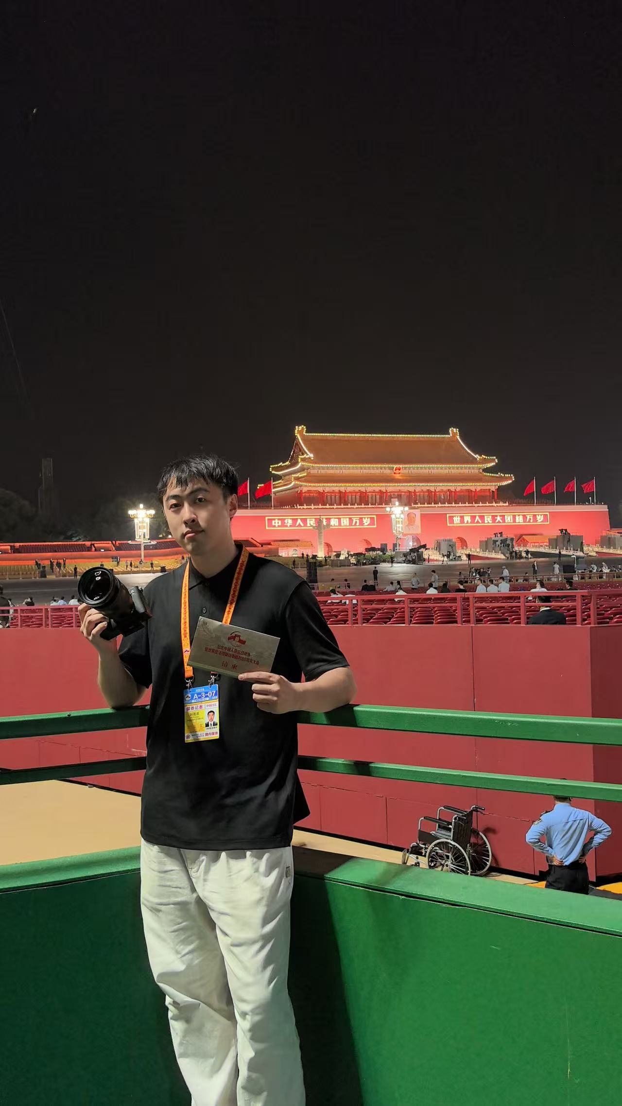 9月3日上午,纪念中国人民抗日战争暨世界反法西斯战争胜利80周年大会在北京天安门广场隆重举行,我有幸置身于现场观礼,亲历这场铭记历史、昭示未来的盛典。从凌晨集结出发,到黎明前的静静等待,这虽是一场体力的考验,却丝毫未曾消减我内心的激动和炽热。