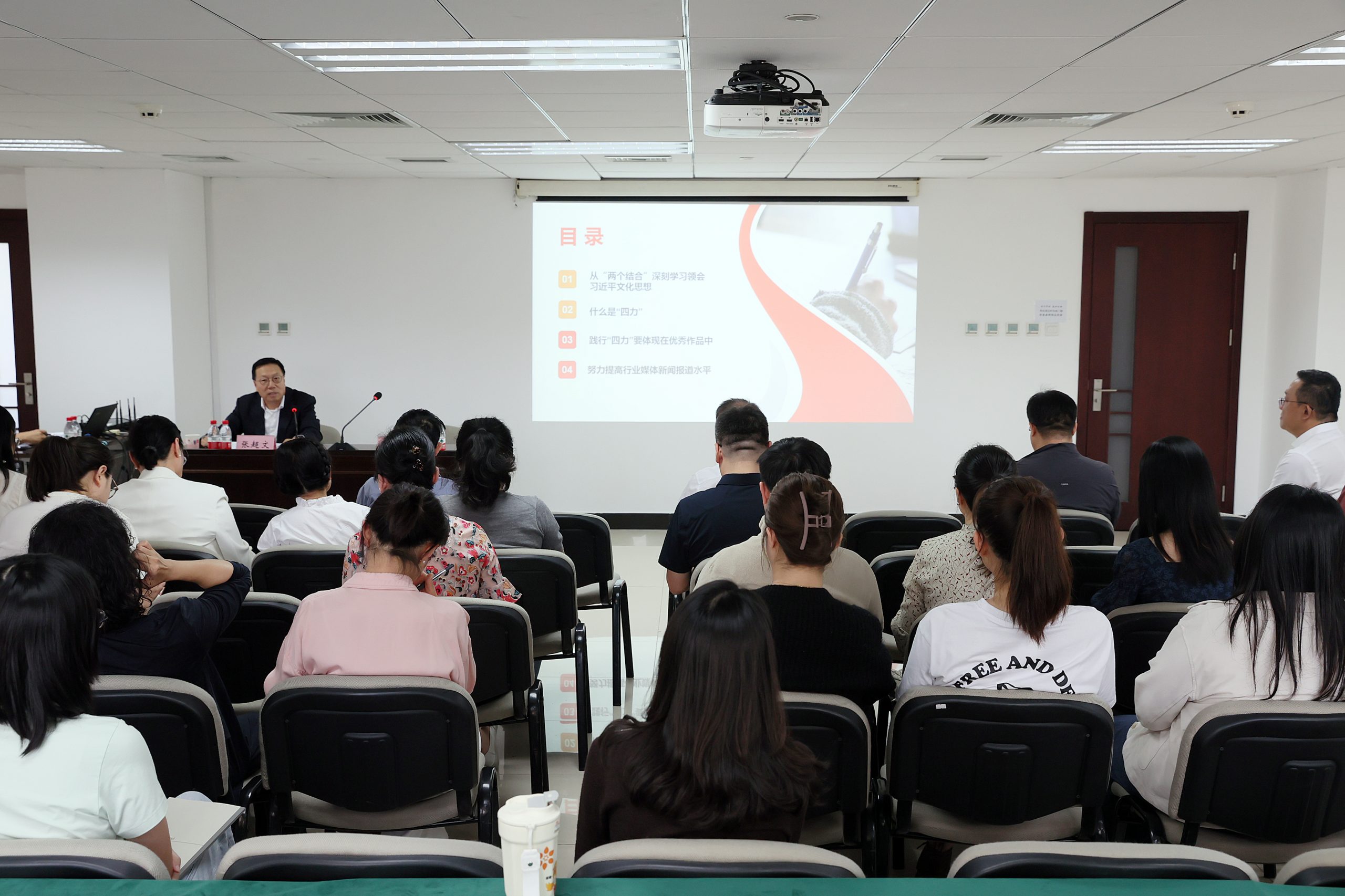 9月25日下午,中国人事报刊社举办新闻业务大讲堂,中国行业报协会会长张超文围绕“深刻领会习近平文化思想,努力践行四力,创作更多精品力作”主题,为全体采编人员授课。中国人事报刊社党委书记、社长贺汲泉主持并总结,社班子成员、各采编部门负责人和全体编辑、记者参加学习。