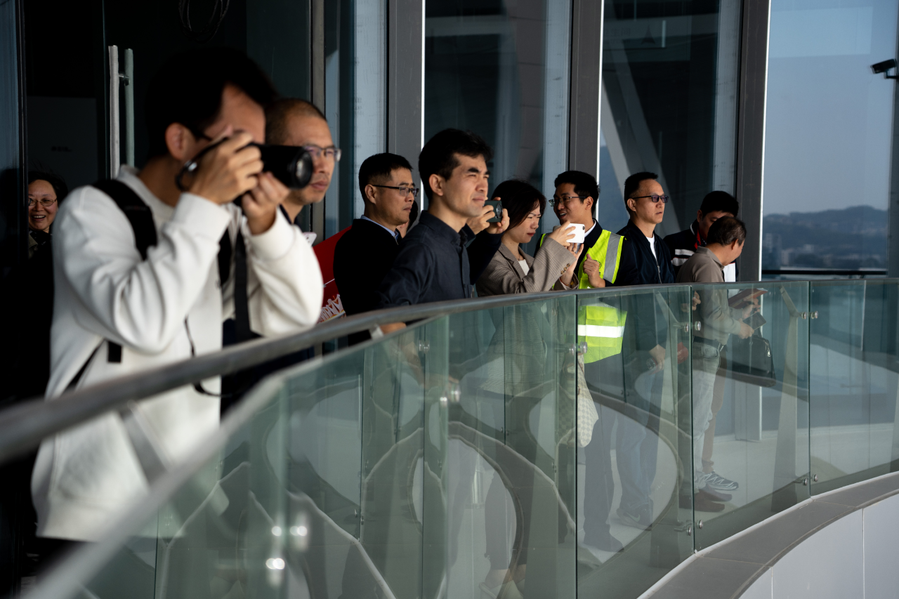 活动现场,通过宣传片沉浸式感受了大湾区科学会堂的宏伟气势、设计美学与功能内涵。集中会议结束后,媒体记者们近距离探访了这座充满科技感与艺术气息的地标建筑,实地感受全国最大波浪形不锈钢屋面的视觉震撼,体验智能幕墙、光伏玻璃等绿色科技的创新应用,了解主论坛大厅的声学设计与空间美学,全方位记录这座科创地标的独特魅力。