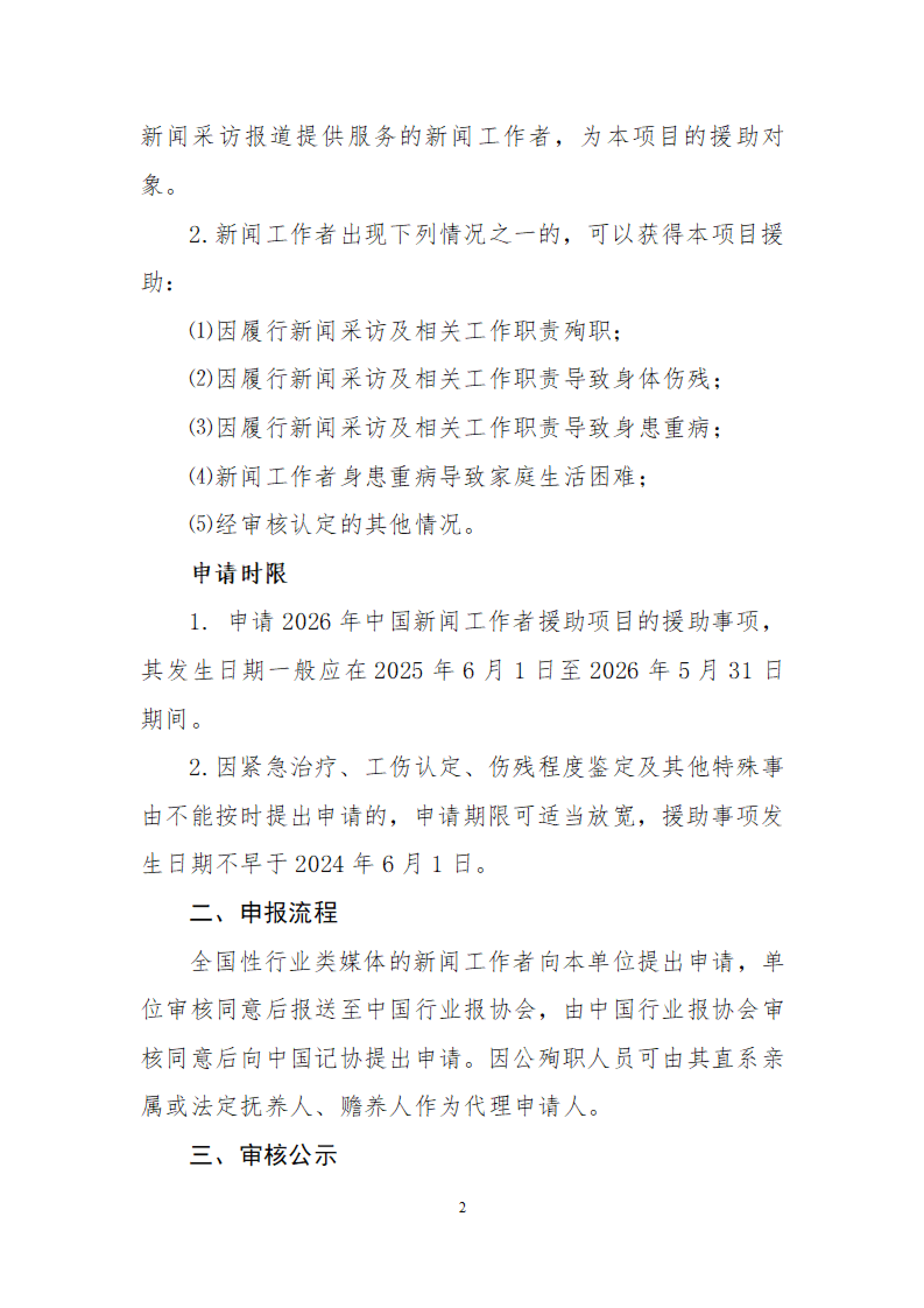 1.申请2026年中国新闻工作者援助项目的援助事项,其发生日期一般应在2025年6月1日至2026年5月31日期间。