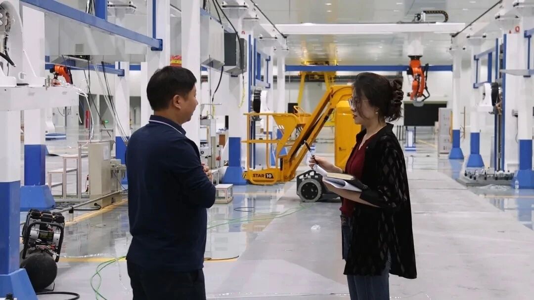 图为记者代振莹在重庆采访航天院所工厂工作人员。