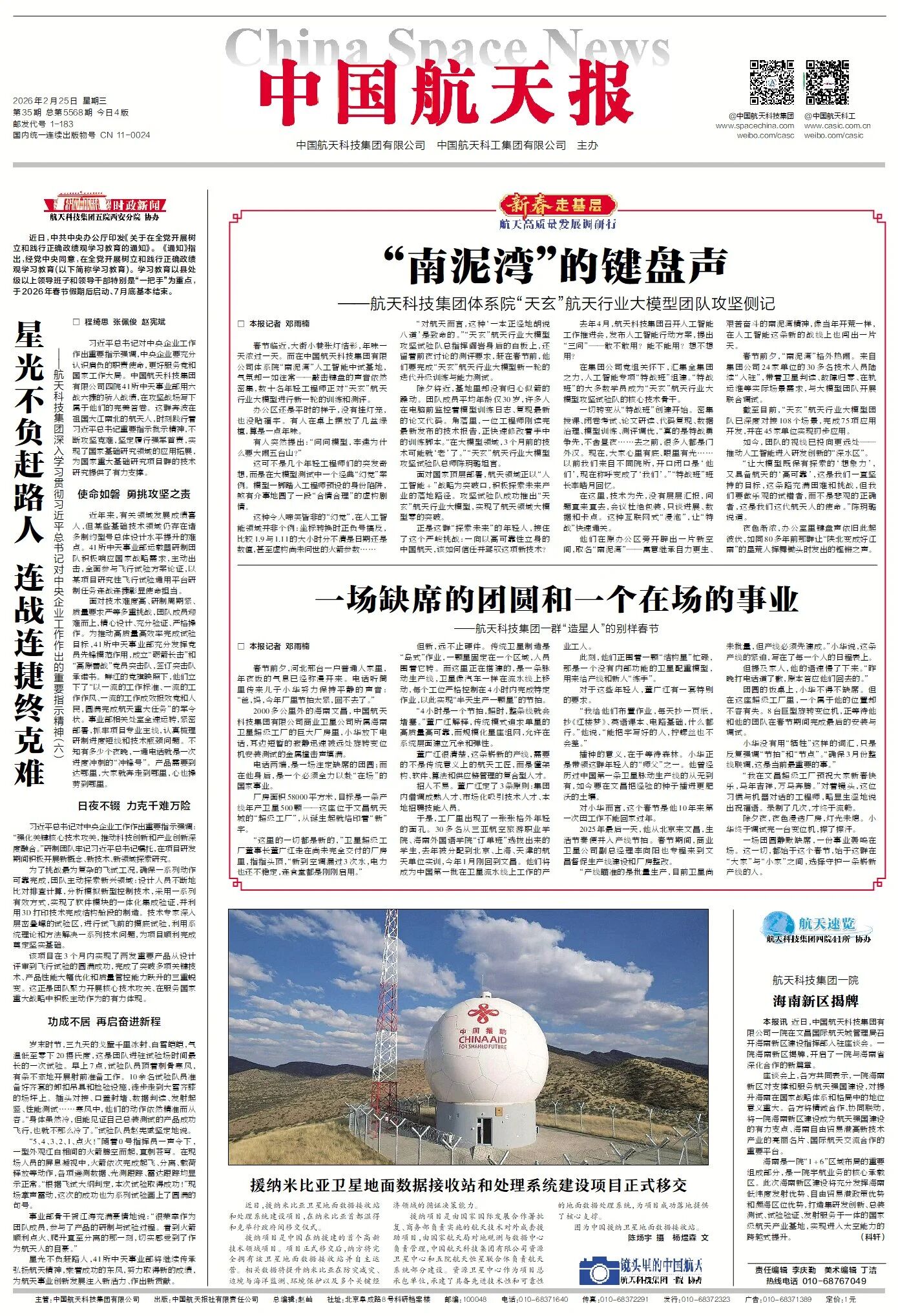 2026年“新春走基层”活动启动以来,中国航天报社坚持顶层设计、靠前指挥、全域联动,将此次报道作为年度开篇重大宣传任务,构建起组织严密、分工明确、运转高效的工作机制,为全媒体报道落地见效提供坚实保障。