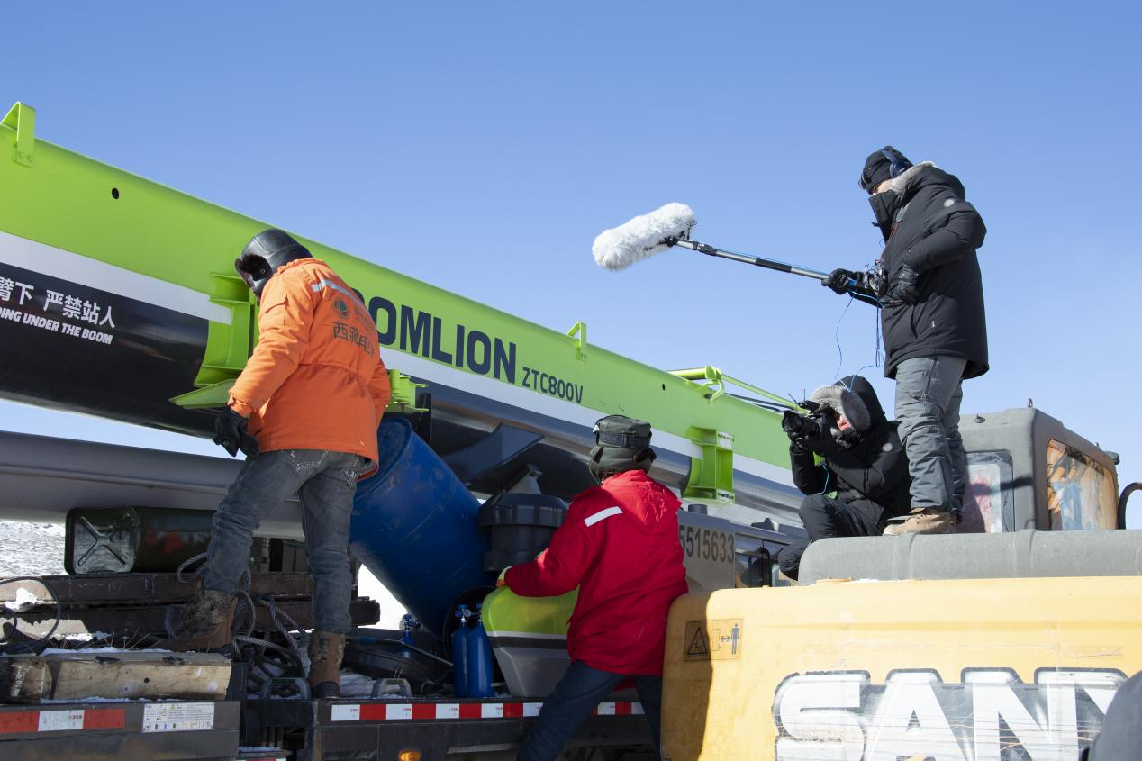 英大传媒集团《点亮阿里》摄制团队在沼泽地施工现场拍摄