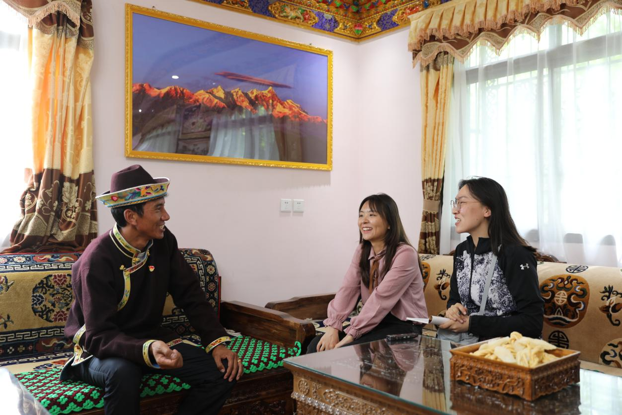英大传媒记者在西藏林芝嘎拉村采访村民达瓦坚参